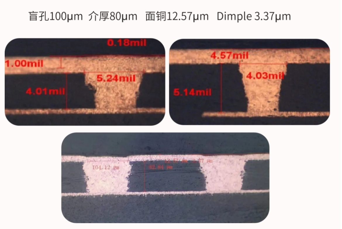▪ 可PTH后直接填孔电镀,具有填孔爆发力强,面铜薄、dimple小等特点